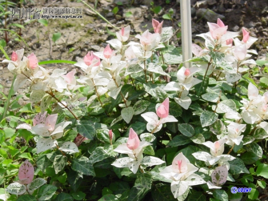 常绿木质藤蔓植物,茎有不明显皮孔。小枝、嫩叶柄及叶背面被短柔毛,老枝叶无毛。叶革质,椭圆形至卵状椭圆形或宽倒卵形,长2-6cm,宽1-3cm。老叶近绿色或淡绿色,第一轮新叶粉红色,少数有2-3对粉红叶,第二至第三对为纯白色叶,在纯白叶与老绿叶间有数对斑状花叶,整株叶色丰富,可谓色彩斑斓。 |